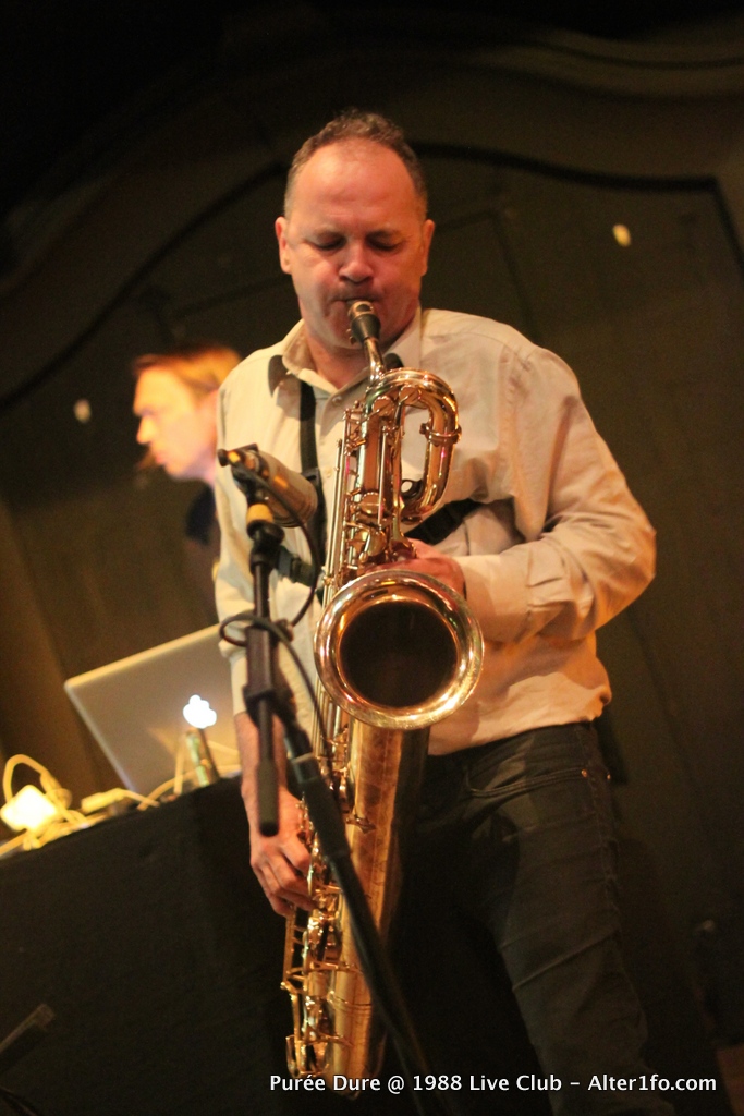 Trio électro-répétitif à base d’électrophones, d’improvisations au saxophone et d’images vidéo, Purée Dure constitue une alternative radicale à la sophistication des platines et des samplers.